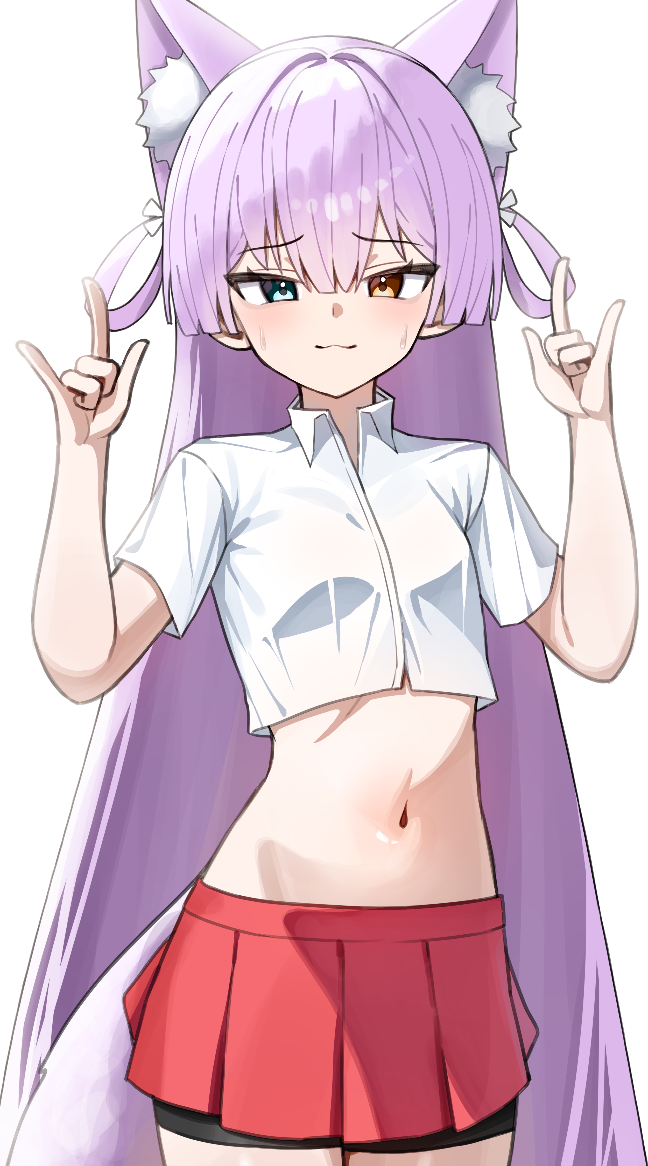 tanishi (hetianming11093), shirakami fubuki, hololive, absurdres, highres, 1girl, ahoge, animal ear fluff, animal ears, bare shoulders, blue eyes, breasts, cleavage, closed mouth, collarbone, collared shirt, fox ears, fox girl, fox tail, heart, light blush, light smile, long hair, looking at viewer, medium breasts, naked shirt, off shoulder, shirt, simple background, solo, standing, tail, virtual youtuber, white background, white hair, white shirt