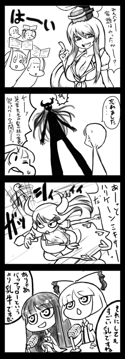 2boys4koma5girlsbowcaved (touhou)comicgreyscalehair bowhathornslong hairmonochromemultiple boysmultiple girlsribbon