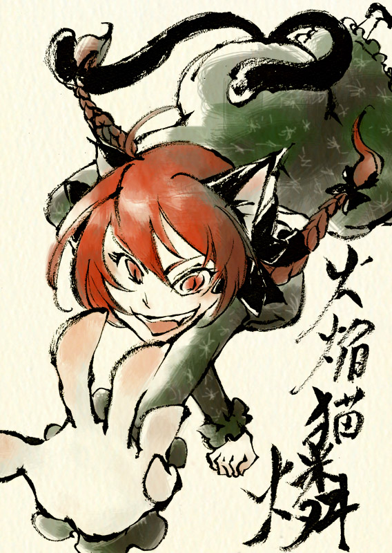 1girlanimal earsbowbraidcat earscat girlcat tailfangfemale focushair bowred eyesred hairsolotailtwin braidswhite background