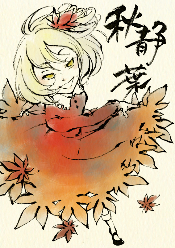 1girlblonde haircharacter namefemale focushair ornamentleafleaf hair ornamentshort hairsoloyellow eyes