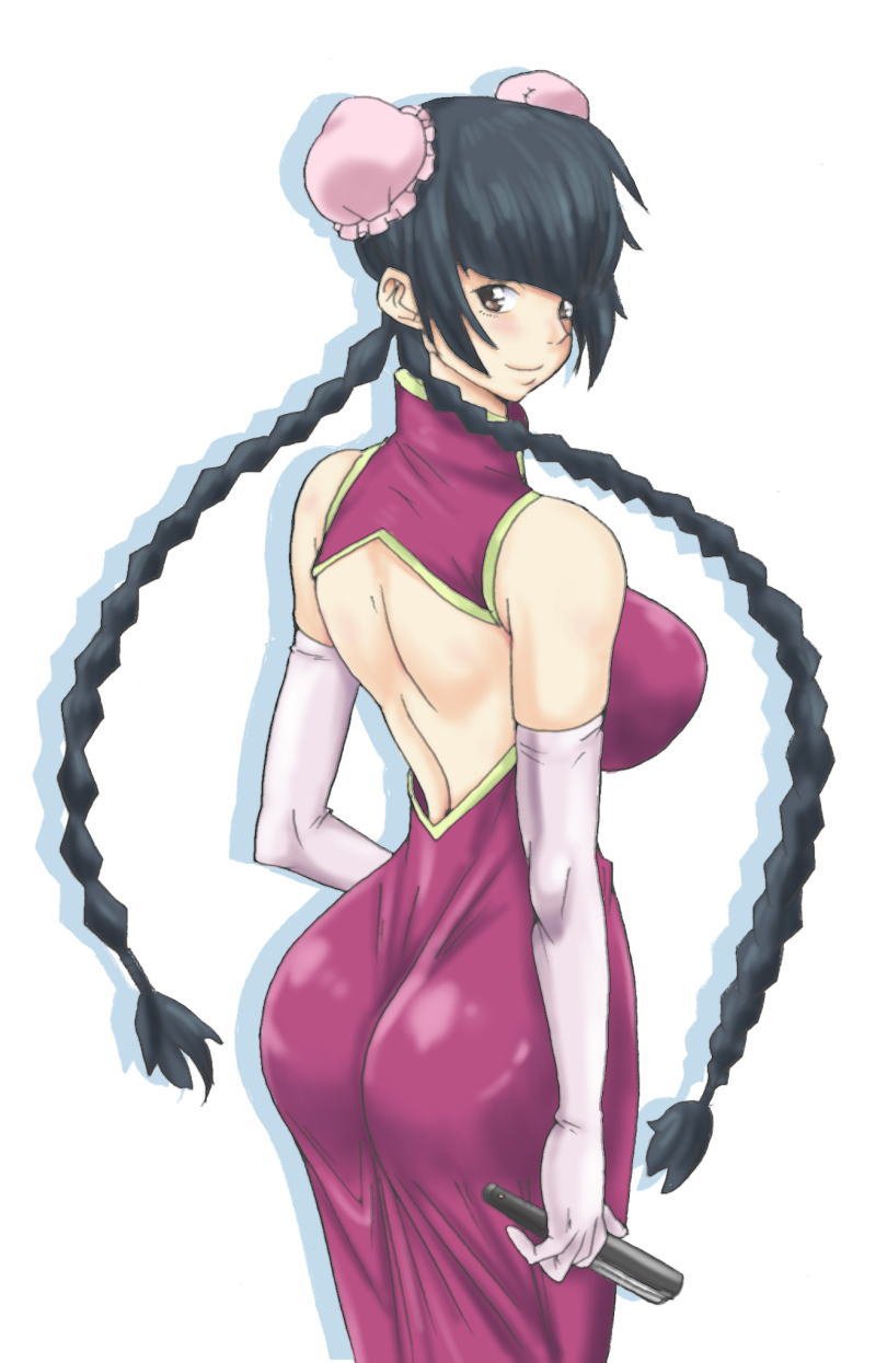 komatsu eiji, highres, armpits, ass, blush, breasts, brown hair, green eyes, large breasts, one eye closed, short hair, solo, wink