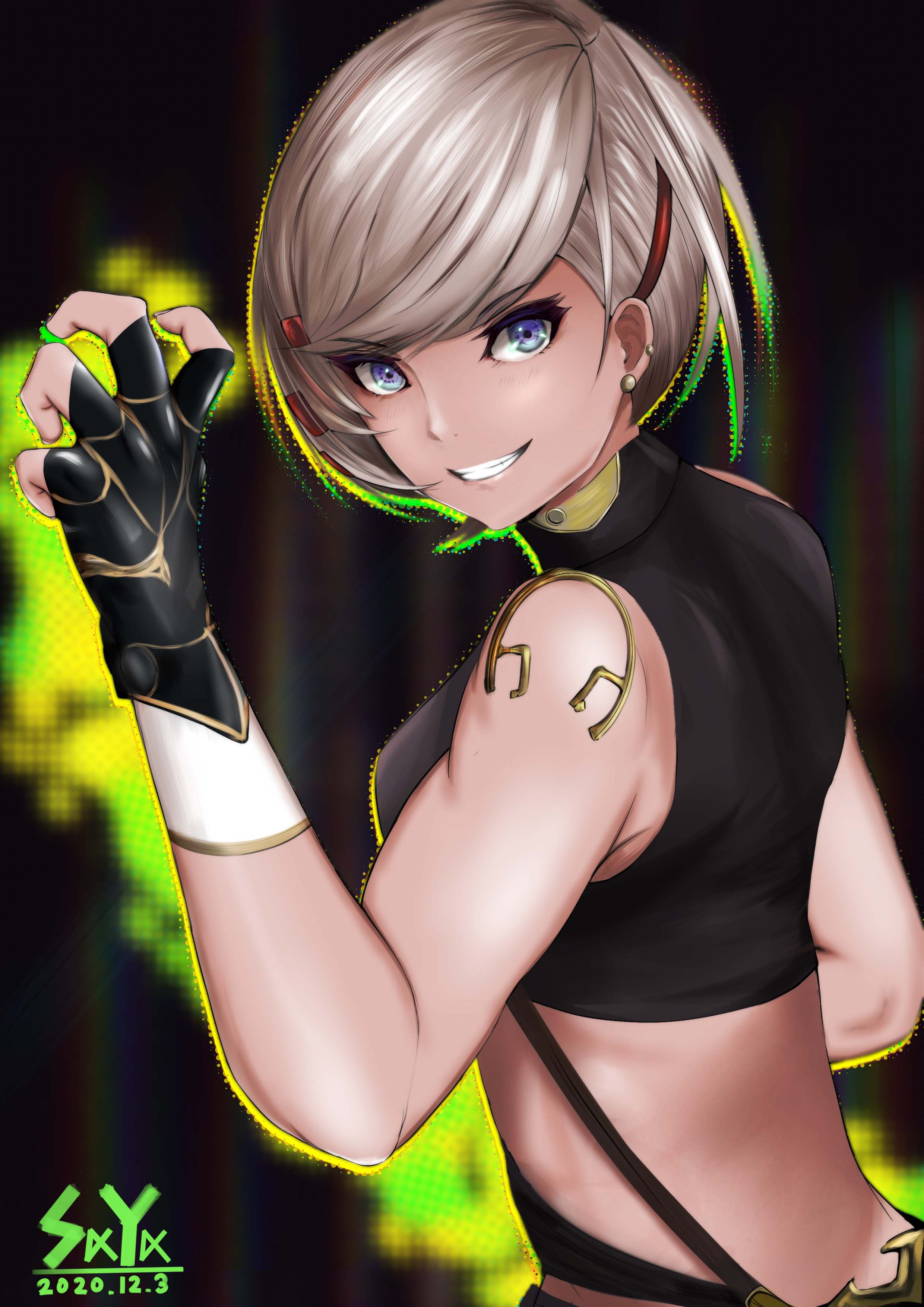 homare (fool's art), taki (soulcalibur), namco, soul calibur, 1girl, anus, ass, barefoot, bent over, black eyes, black hair, brown hair, censored, feet, female focus, fingernails, from behind, gloves, looking at viewer, looking back, mosaic censoring, nude, ponytail, pussy, soles, solo, thighs, toes
