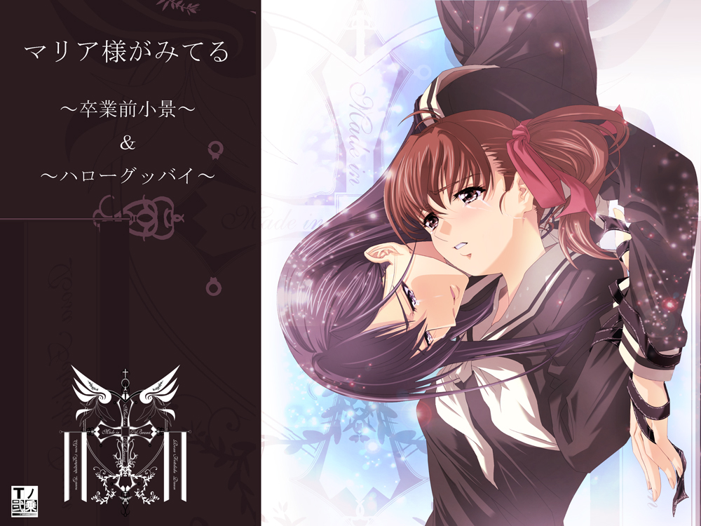 00s2girlsblazerblue hairbrown hairhalf-closed eyehead tilthugjacketlong sleevesmultiple girlsred eyesshort hairsimple backgrounduneven eyeswhite backgroundyuri