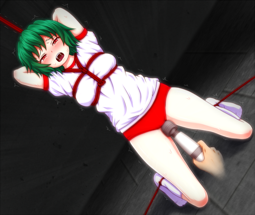 arms behind backarms upbare legsblushbondageboundbound anklesbound armsbreast bondageburumaclitoral stimulationdisembodied handdutch anglefemaleFlag for Deletionforced orgasmfull bodygreen hairgym uniformhalf-closed eyeshandshitachi magic wandholdingkneehighskneelingmotion linesnose blushpuffy short sleevespuffy sleevesred eyesred roperestrainedropesalivasaliva trailshibari over clothesshirtshort hairshort sleevessolo focussportswearsweattremblingvibratorwhite hairwhite shirt