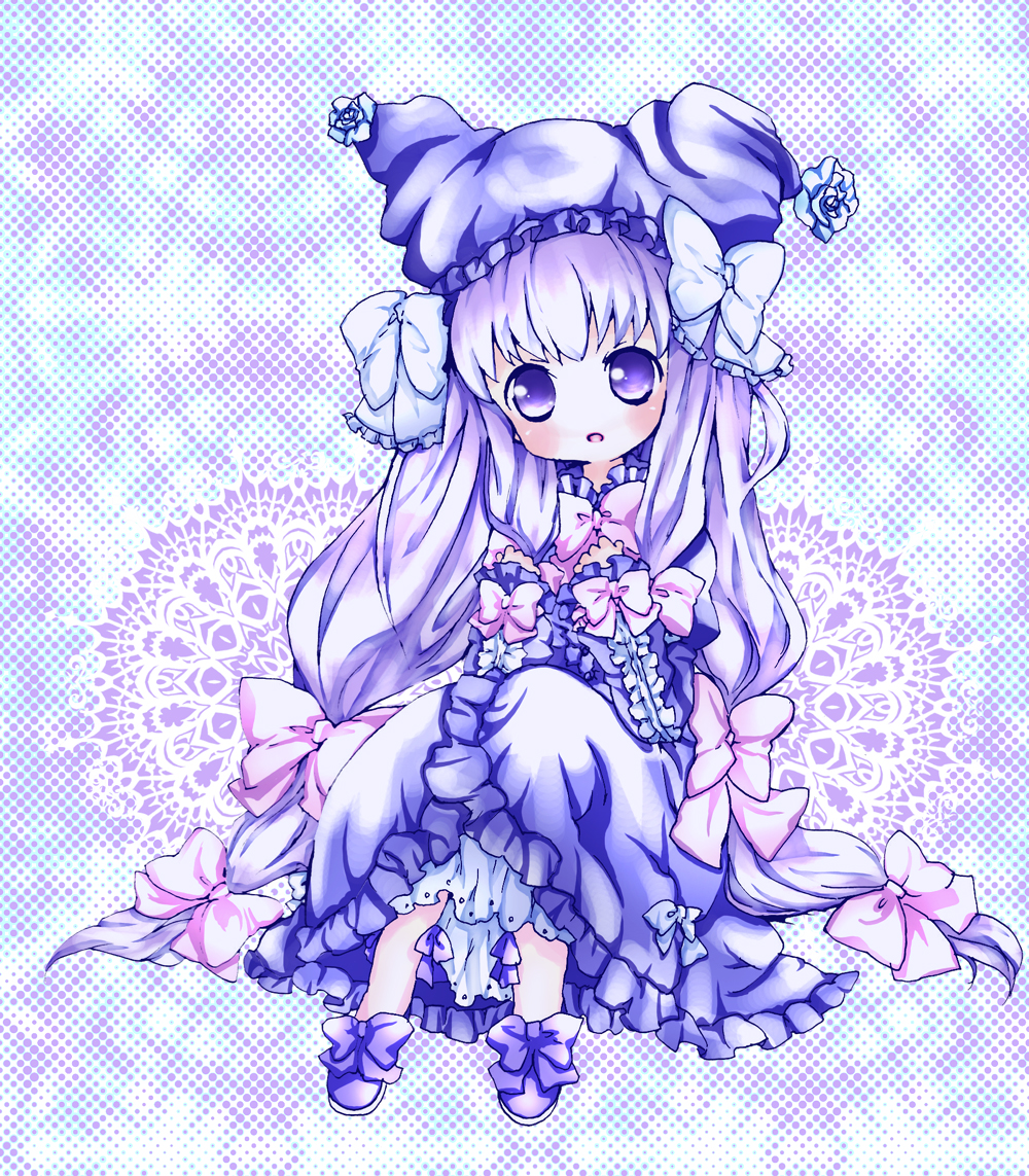 kirakishou, rozen maiden, 00s, 1girl, boots, cross-laced clothes, dress, female focus, flower, flower eyepatch, hair flower, hair ornament, lace-up boots, long hair, long sleeves, looking at viewer, pink hair, plant, puffy sleeves, sitting, smile, solo, thigh boots, thighhighs, two side up, very long hair, vines, wavy hair, yellow eyes