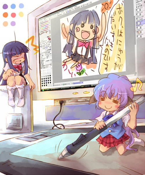 000v666, original, absurdres, highres, painting (medium), traditional media, blue sky, building, day, no humans, outdoors, plant, scenery, sky
