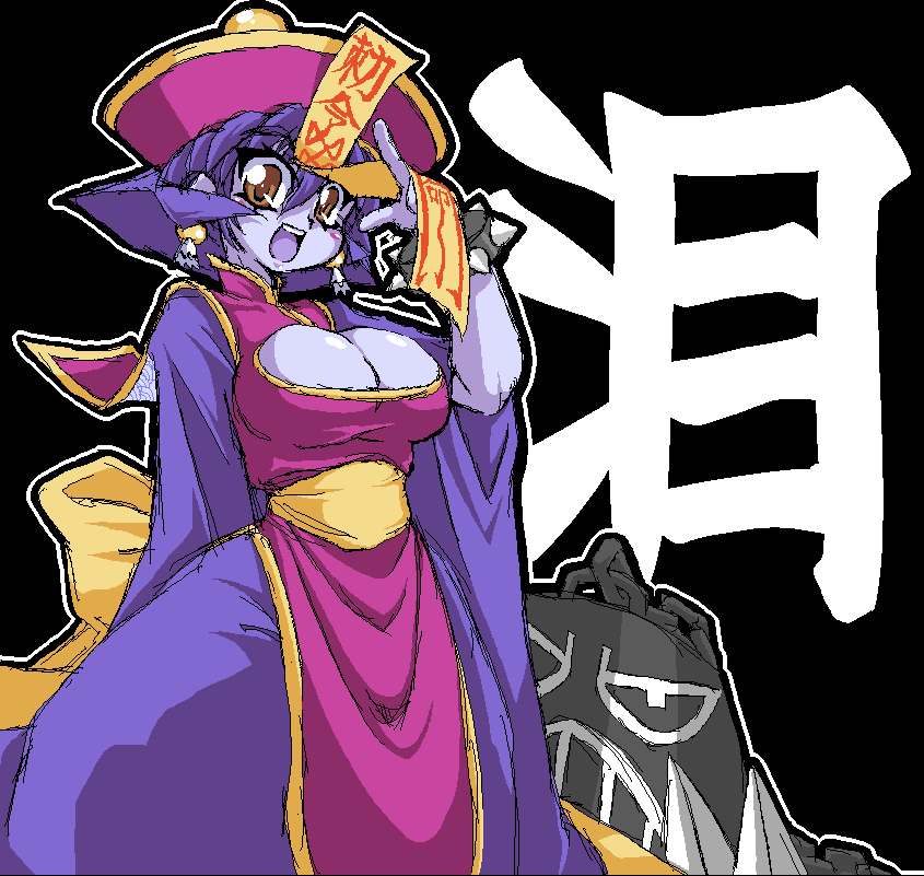 1girlblue skinbreastscleavagecleavage cutoutclothing cutoutcolored skinfemale focusflipped hairoekakisolo