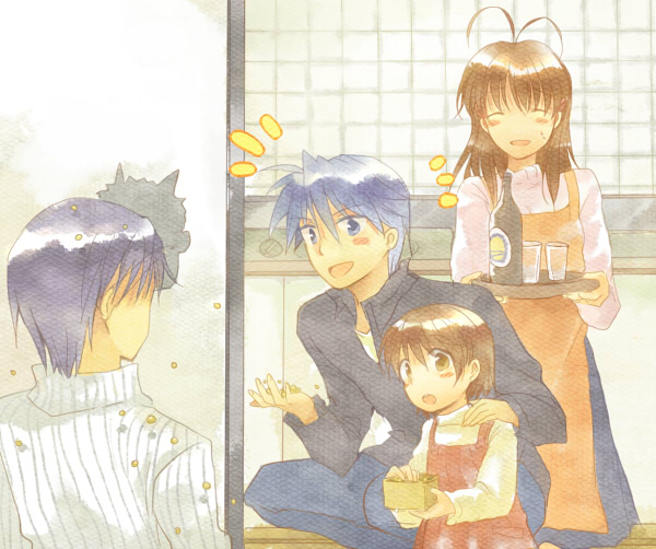 narutaki fuuka, mahou sensei negima!, 00s, blush, brown eyes, innertube, one eye closed, red hair, swim ring, swimsuit, twintails, wink