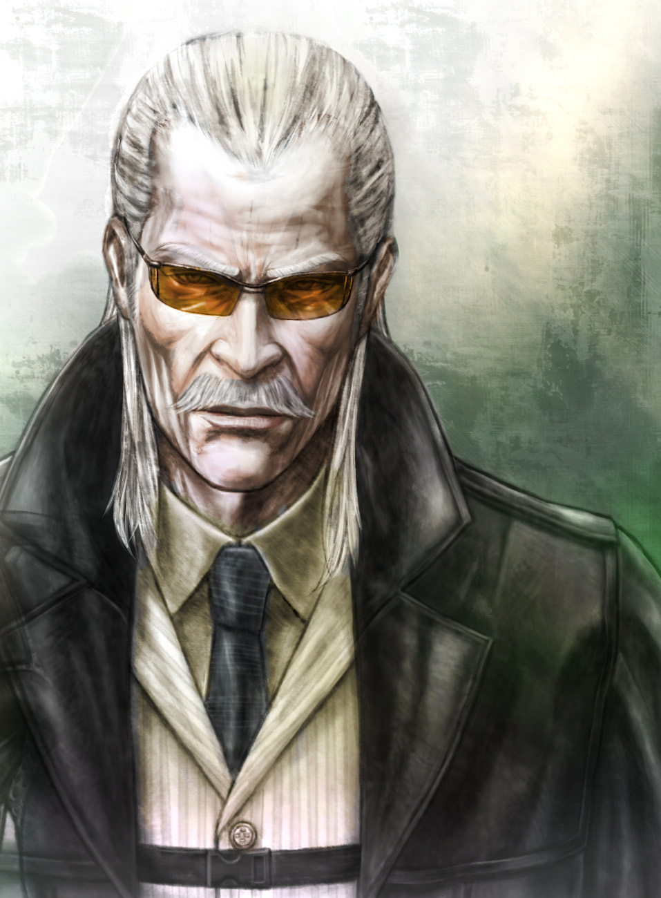 1boycoatdress shirtfacial hairglasseslong hairmale focusmustachenecktieshirtsolotrench coatwhite hair