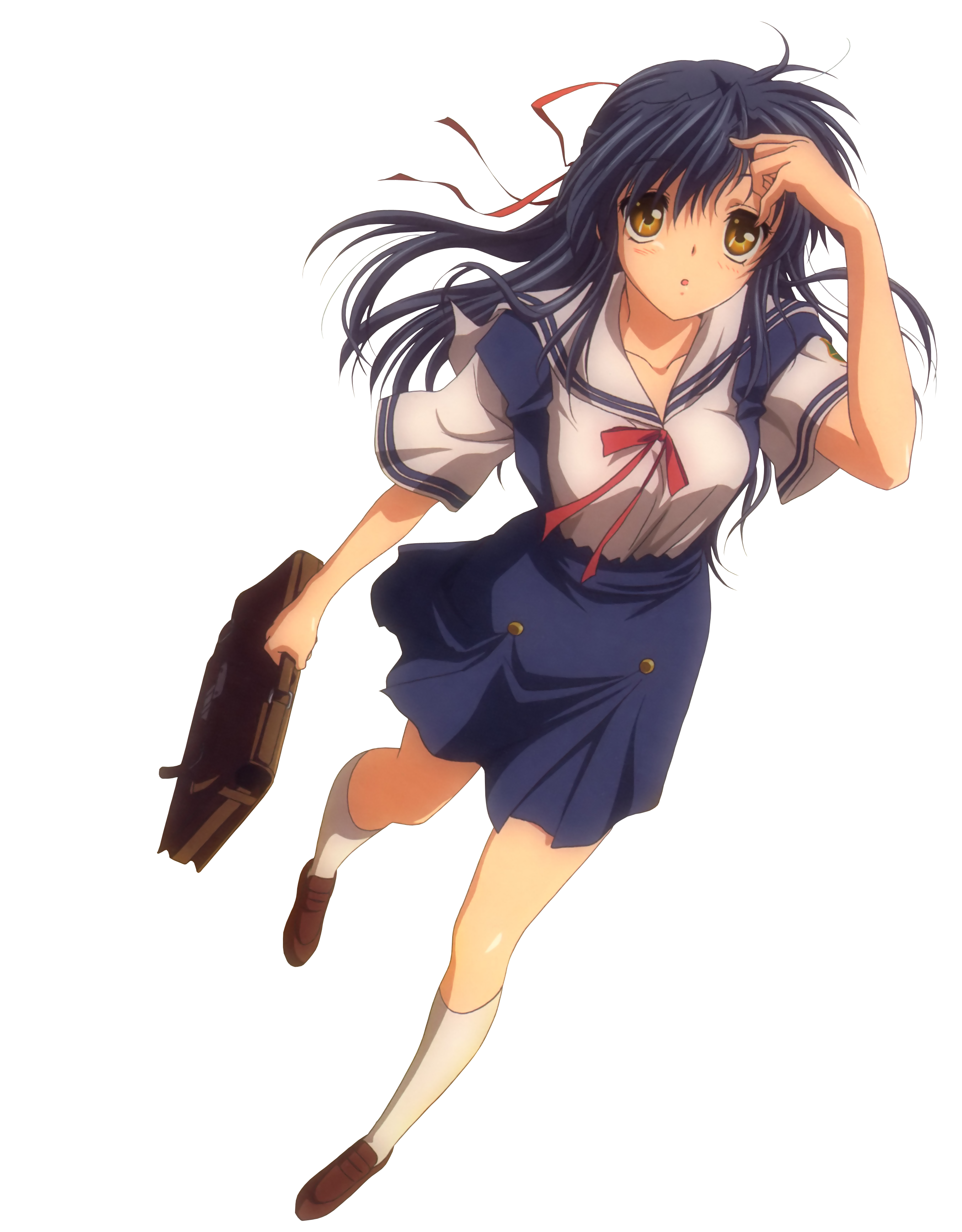 00s1girlaged downblue hairfemale focusfull bodykneehighslong hairribbonschool uniformserafukusockssolotransparent backgroundyellow eyes