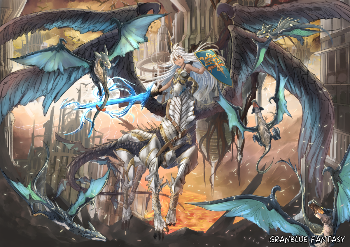 1girlarmpitsbare shouldersboobplatebreastplatebreastscastlecentauroidcopyright namedark skindark-skinned femaledragondragon girldragon wingsfloatingfloating castlefull bodyhair between eyesholdingholding swordholding weaponlavalong hairlooking to the sidemedium breastsopen mouthoutdoorsred eyesshieldsidelockssmall dragonswordtaurvery long hairweaponwhite hairwings