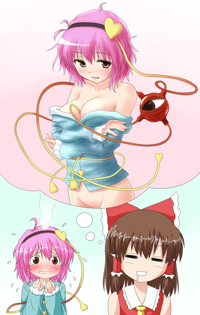 haruyama kazunori, heinrich van freeman, miletta lelouch, tekkaman blade, 1990s (style), 1boy, 1girl, backlighting, bald, belt, bloom, blunt bangs, buckle, contrapposto, green eyes, hand on own chest, looking at viewer, panties, pantyshot, purple hair, retro artstyle, short hair, solo focus, standing, underwear, white panties