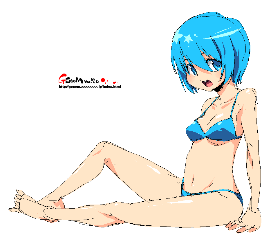 barefootbikiniblue bikiniblue eyesblue hairfeetfull bodyhalterneckoekakishort hairsimple backgroundsittingsketchsoloswimsuitwatermarkweb addresswhite background