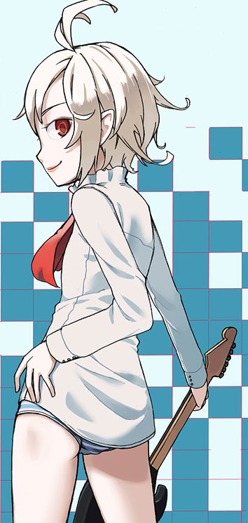 ahogeguitarinstrumentpantiesprofilered eyesshort hairsolostriped clothesstriped pantiesunderwearwhite hair
