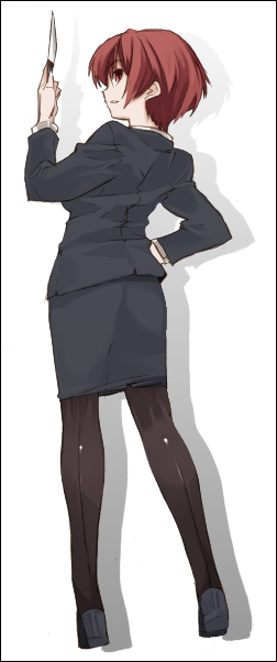 hyudora, furude rika, hanyuu, higurashi no naku koro ni, bad id, bad pixiv id, 00s, blue hair, bow, bowtie, detached sleeves, glowing, glowing eyes, horns, long hair, purple eyes, purple hair, suspenders