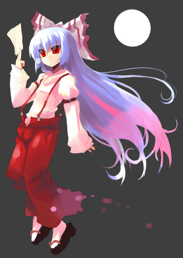 1girlfemale focusfull bodygrey backgroundlong hairmoonoutdoorsred eyesribbonsimple backgroundsolostanding