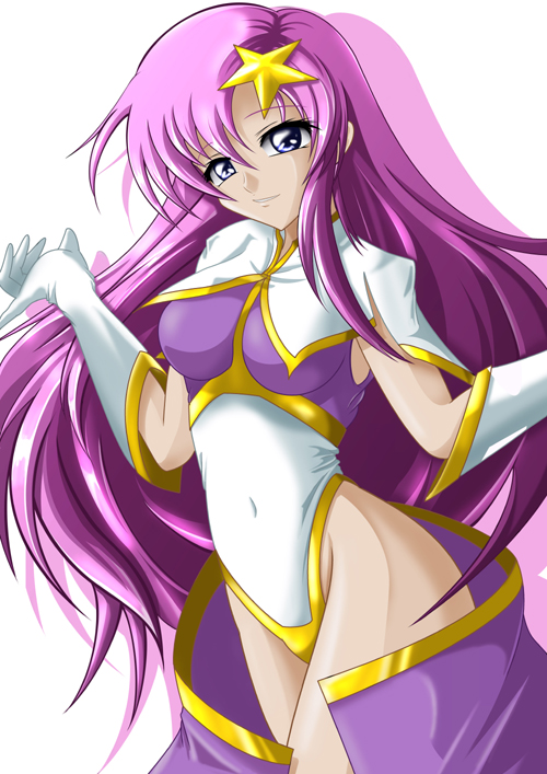 usagikurumi777, anya melfissa, anya melfissa (indonesian casual), hololive, hololive indonesia, highres, 1girl, :d, batik, blouse, braid, brown hair, brown shirt, close-up, kris hair ornament, looking at viewer, neckerchief, open mouth, purple eyes, shirt, short hair, side braid, simple background, smile, solo, virtual youtuber, white background, white neckerchief