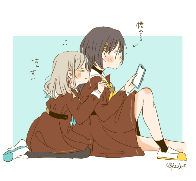 2girlsgrey hairhair ornamenthasu no sora school uniformlong hairmultiple girlsschool uniformtriangle hair ornamentvirtual youtuber