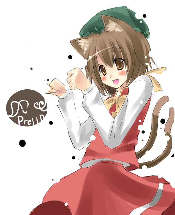 1girlanimal earsblushbrown eyesbrown haircat earscat girlcat tailfemale focushatmultiple tailspaw poseshort hairsolotailwhite background