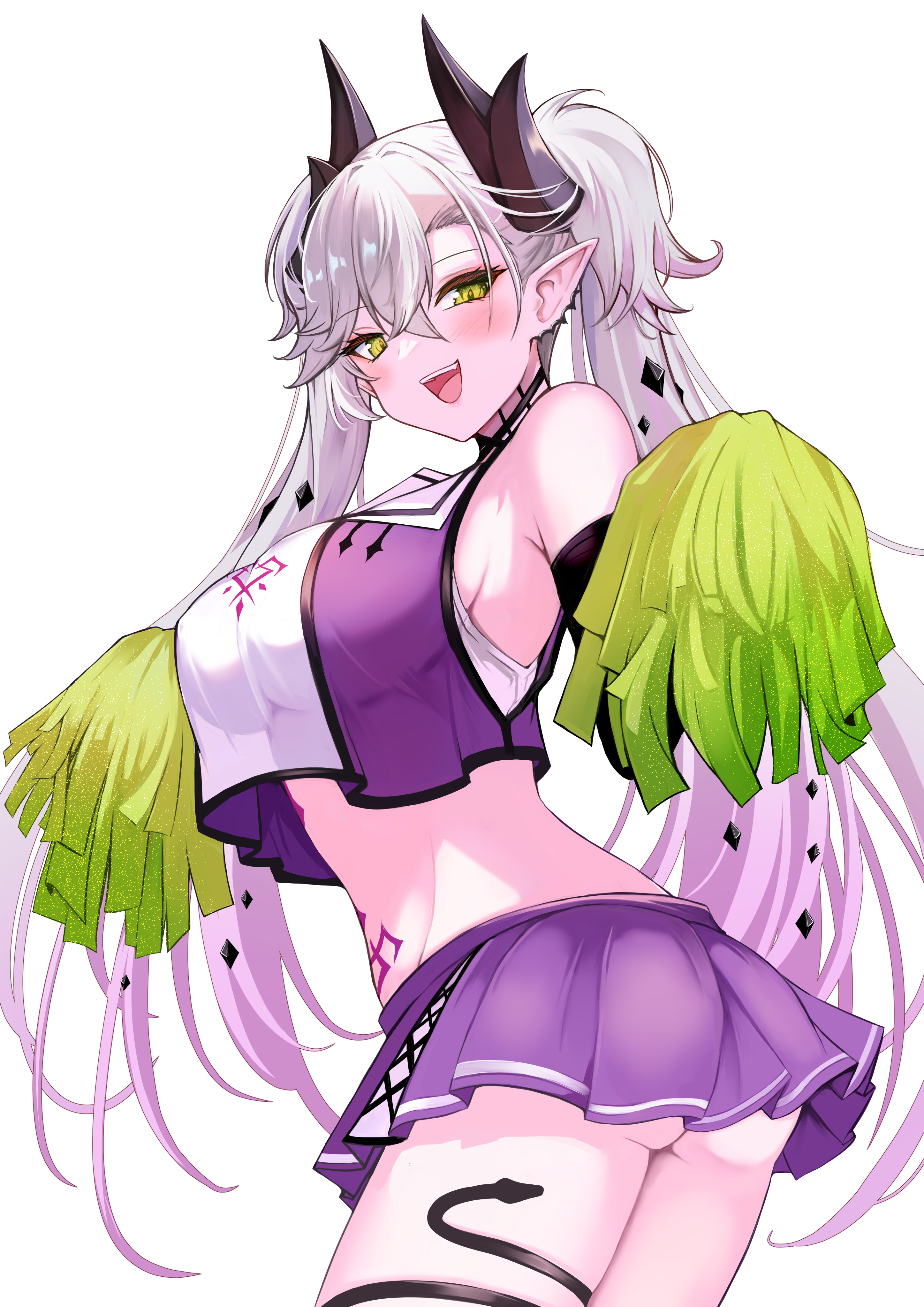 sky above me, sky above me (vtuber), 1girl, ass, ass focus, bandaged arm, bandages, crop top, film grain, long hair, looking back, panties, thong, underwear