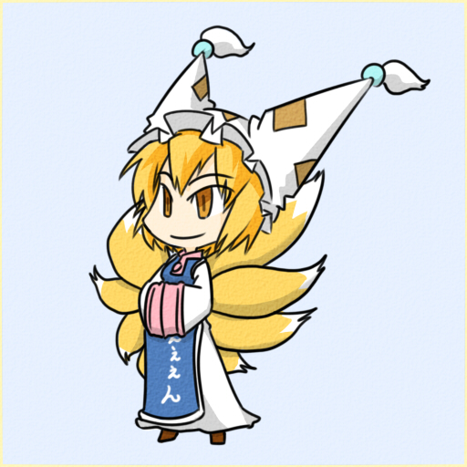 1girlanimal hatblue backgroundfemale focusfox tailhands in opposite sleeveshatlong sleevesmob capmultiple tailsshort hairsolotailtasselwide sleeves
