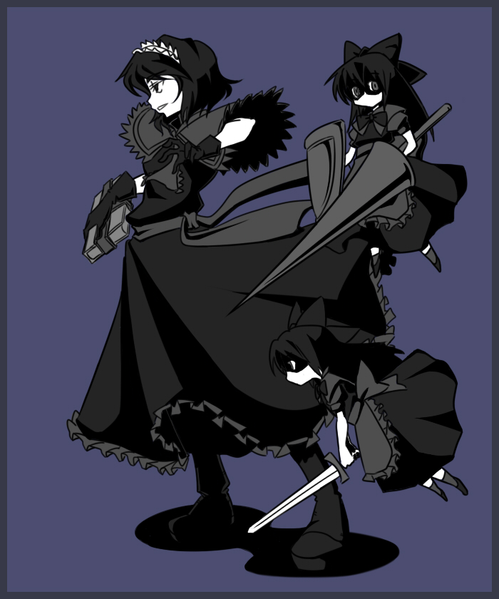 kairakuen umenoka, fumika, kanaka, shigofumi, silver hair, 00s, cape, hat, shako cap, solo, staff, thighhighs, yellow eyes