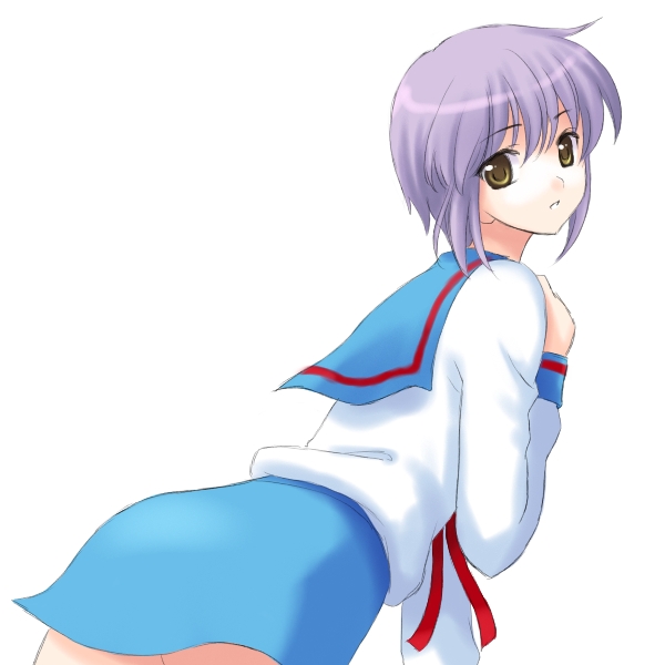 00s1girlfemale focuslooking backpurple hairschool uniformserafukusimple backgroundsolowhite background