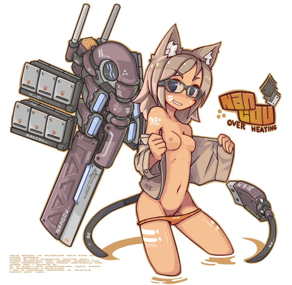 animal earsblue eyesbreastsbrown haircat earseyewearfemalefemale onlyFlag for Deletionglasseshairkemonomimilooking at viewernipplespantiespanty pullsolotan skinunderwearusbvulva
