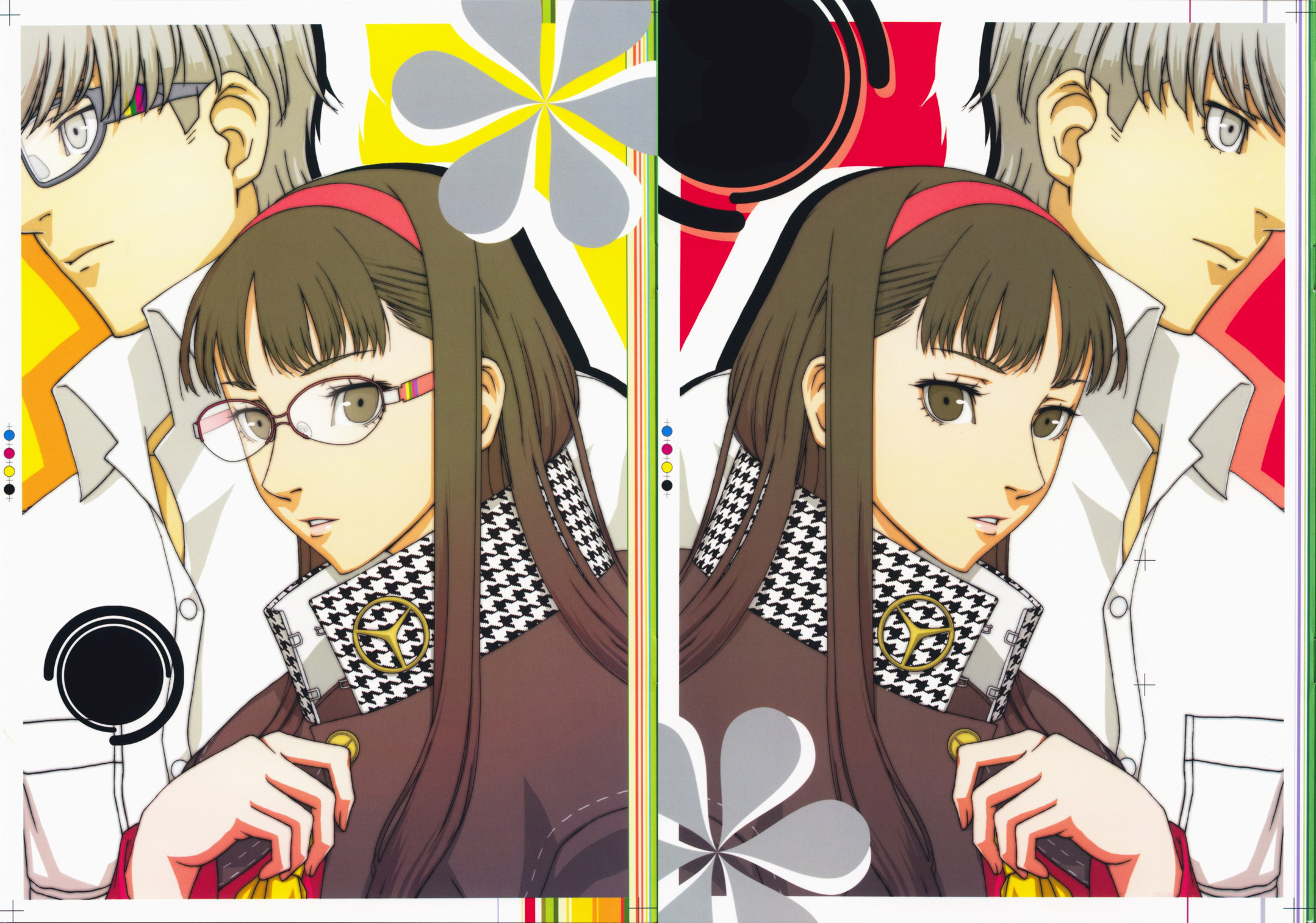 2b (nier:automata), 9s (nier:automata), aigis (persona), mochizuki ryouji, yuuki makoto (persona 3), nier:automata, nier (series), persona, persona 3, highres, …, 1girl, 2b (nier:automata) (cosplay), 2boys, 9s (nier:automata) (cosplay), android, arms at sides, black choker, black dress, black gloves, black jacket, black shorts, blindfold, blonde hair, blue hair, blush, chibi, chibi inset, choker, cleavage cutout, closed mouth, clothing cutout, cosplay, covered eyes, cropped legs, digital media player, digital walkman, dress, frown, gloves, gold hairband, hair over one eye, hairband, holding, holding sword, holding weapon, jacket, juliet sleeves, long sleeves, looking at another, mechanical legs, multiple boys, open mouth, parted bangs, parted lips, puffy sleeves, robot ears, short hair, shorts, side slit, simple background, speech bubble, spoken ellipsis, straight-on, sword, twitter username, uminonaka274, walkman nw-s203f, weapon, white background