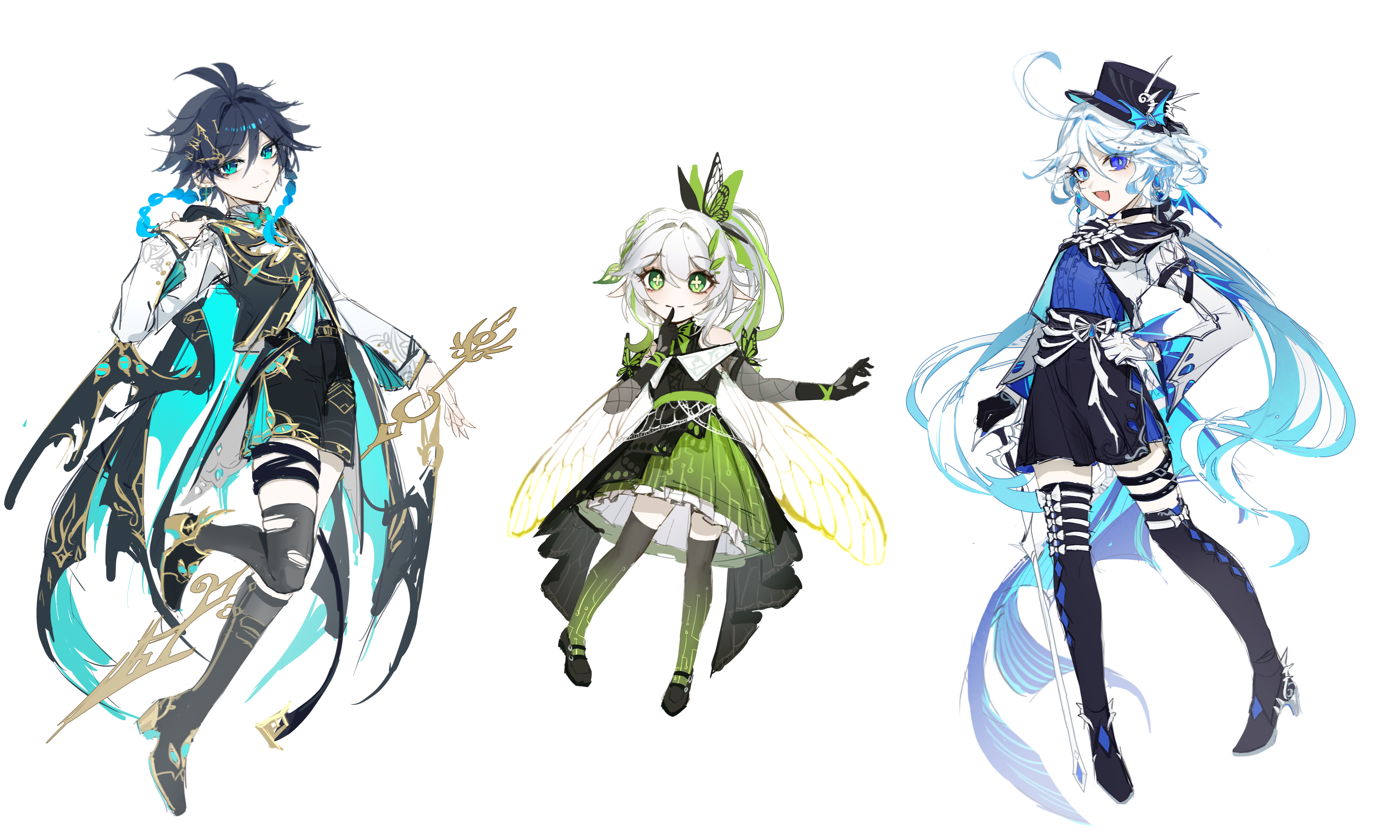 1boy2girlsahogealternate costumealternate universeantenna hairbandaged legbandagesblack bootsblack glovesblack shortsblack skirtblack socksblue eyesbootsbraidbutterfly hair ornamentclosed mouthcovering own mouthdressfull bodyglovesglowingglowing eyesglowing hairgradient hairgreen dressgreen eyesgreen hairhair between eyeshair intakeshair ornamenthand on own hiphand over own mouthhappyhathead tiltheterochromiaholdingholding staffhuge ahogeindex finger raisedknee bootslong hairlong sleeveslooking at viewermulticolored eyesmulticolored hairmultiple girlsopen mouthshort hairshortsside braidsside ponytailskirtsocksstaffstreaked hairsymbol-shaped pupilsthighstorn clothestorn sockswavy hairwhite backgroundwhite hairwings