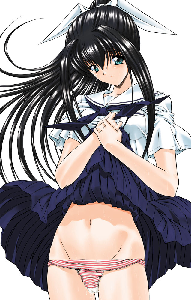 clothes liftlong hairpantiespanty pullsailorschool uniformserafukuskirtskirt liftsolostriped clothesstriped pantiesunderwear