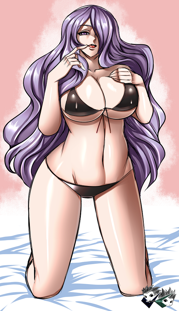 bikiniblack bikinibreastscleavagefemalefinger to mouthFlag for Deletionhair over one eyelarge breastslong hairlooking at viewernaughty facenavelopen mouthpurple eyespurple hairshinyshiny hairsolostretchswimsuit
