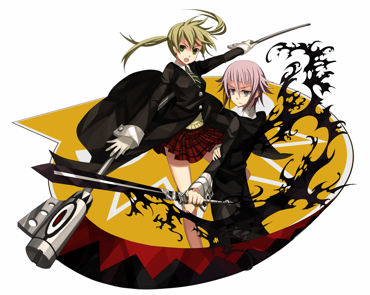 00s1girlandrogynousblack dressblonde hairbrown haircoatcuff linksdressglovesgreen eyeshair between eyeshigh collarlong hairnecktieopen mouthpink hairplaid clothesplaid skirtpurple eyesscytheshort hairshort twintailsskirtspikesswordtwintailsweaponwhite gloves