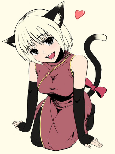 1girlanimal earsbreastscat earscat tailchina dresschinese clothesdresselbow glovesfemale focusfingerless glovesgloveskneelingribbonshort hairsolotailtail ornamenttail ribbonthighhighs