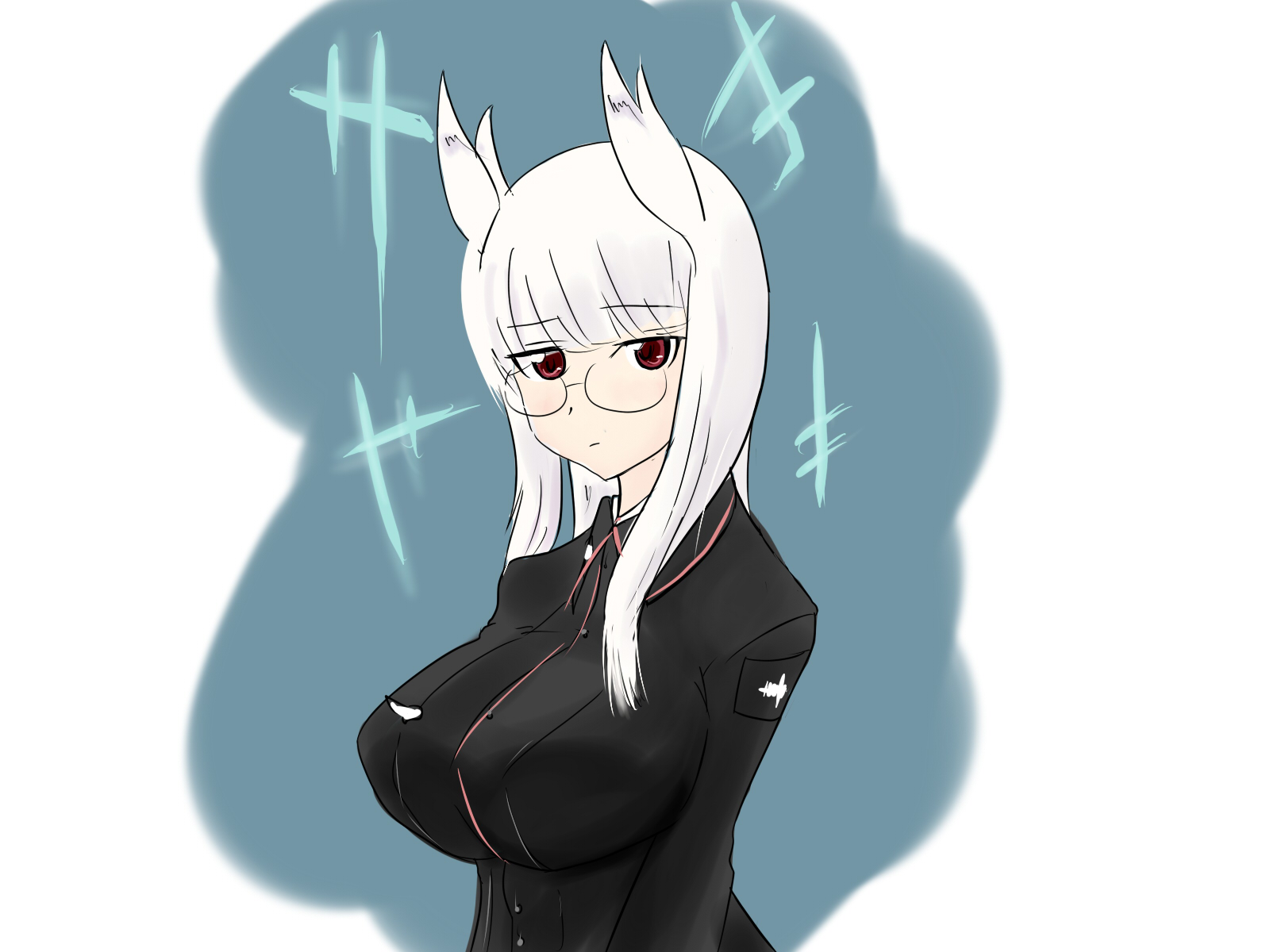 00s1girlanimal earsbreastsfemale focusglasseshead wingshirschgeweih antennaslarge breastsmagicred eyessolowhite hairwings