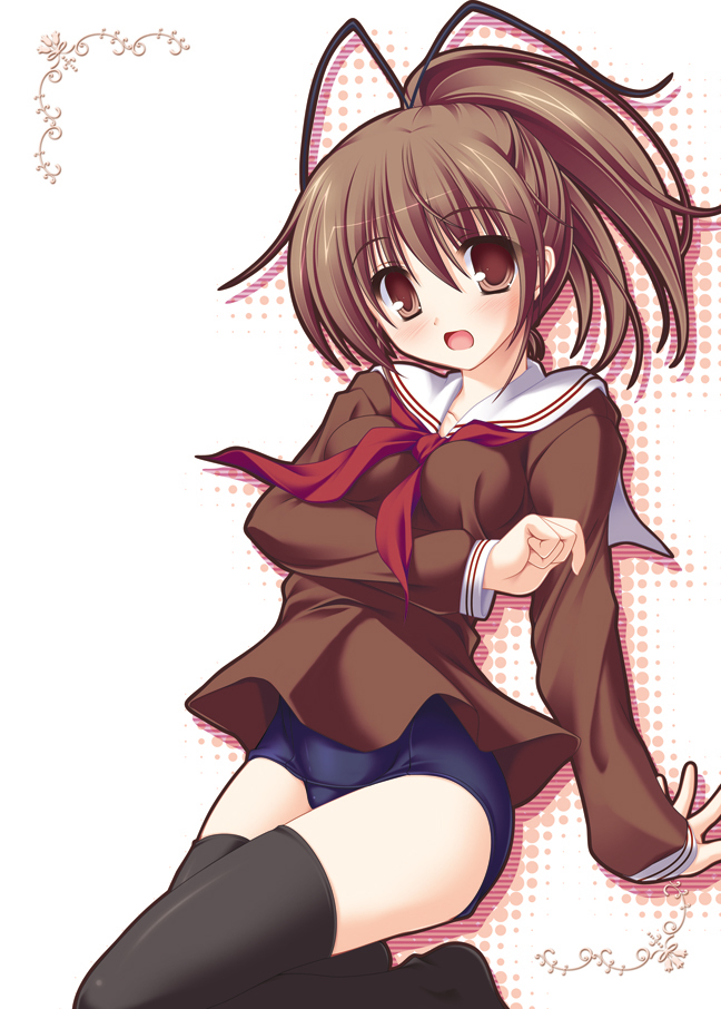 00santenna hairbrown eyesbrown hairno pantsone-piece swimsuitopen mouthponytailschool swimsuitschool uniformserafukusoloswimsuitswimsuit under clothesthighhighs