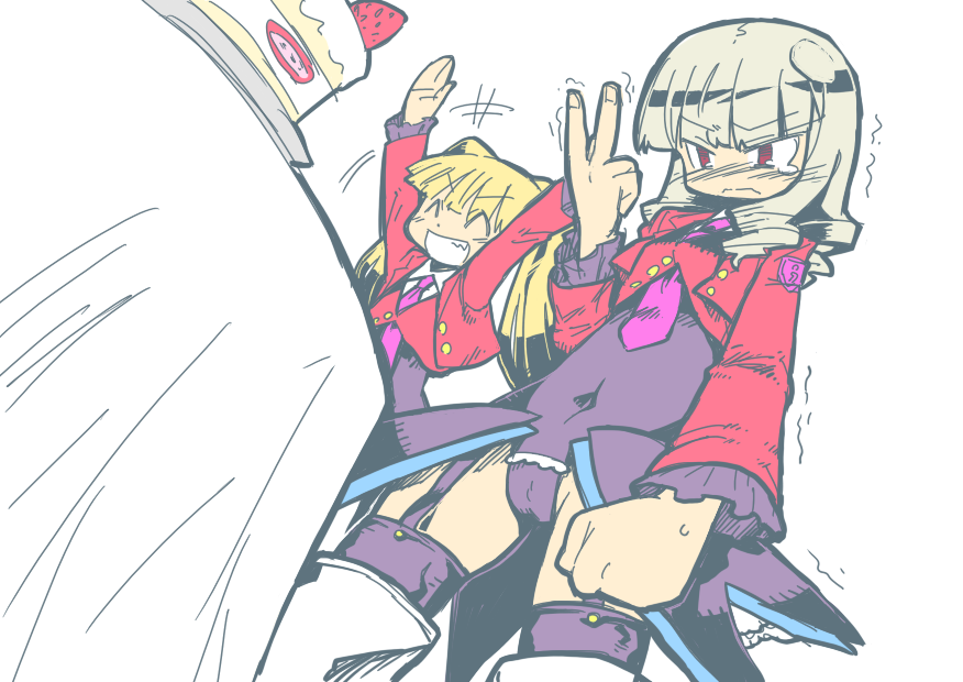 00s2girlsangryblonde haircakefoodhappymultiple girlsnecktiepastrypink necktiered eyestearsthighhighszettai ryouiki