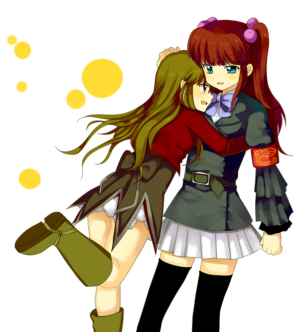 tomusooya, kamio misuzu, air (visual novel), lowres, 00s, 1girl, ascot, blonde hair, blue eyes, cross, female focus, hair ribbon, long hair, ponytail, puffy short sleeves, puffy sleeves, ribbon, short sleeves, sidelocks, signature, solo, upper body