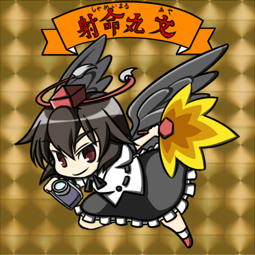 1girlblack wingsbrown haircamerachibifemale focushand fanhatlooking at viewerred eyesshort hairsolotokin hatwings