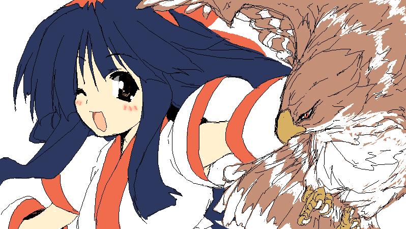 yagisaka seto, follower (yagisaka seto), original, lowres, 1girl, blue hair, breasts, genderswap, genderswap (mtf), glasses, grabbing another's breast, groping, heterochromia, medium breasts, oekaki, solo focus