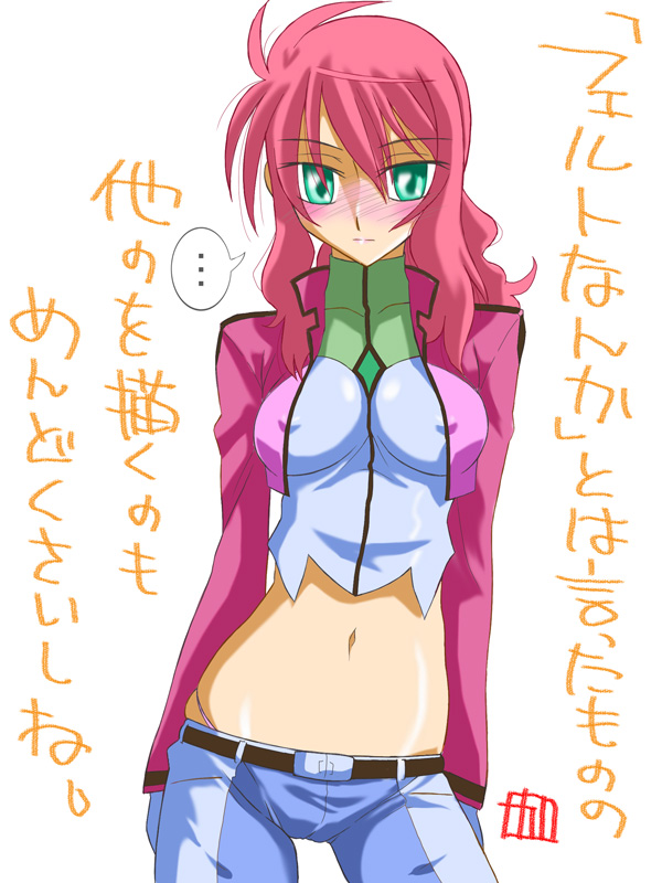 kanro-candy, mizuhashi parsee, touhou, commentary request, 1girl, arm warmers, black shirt, blonde hair, blush, breasts, brown shirt, cleavage, green eyes, hand on own head, looking at viewer, medium breasts, open mouth, pointy ears, scarf, shirt, short hair, short sleeves, simple background, solo, undershirt, upper body, white background, white scarf