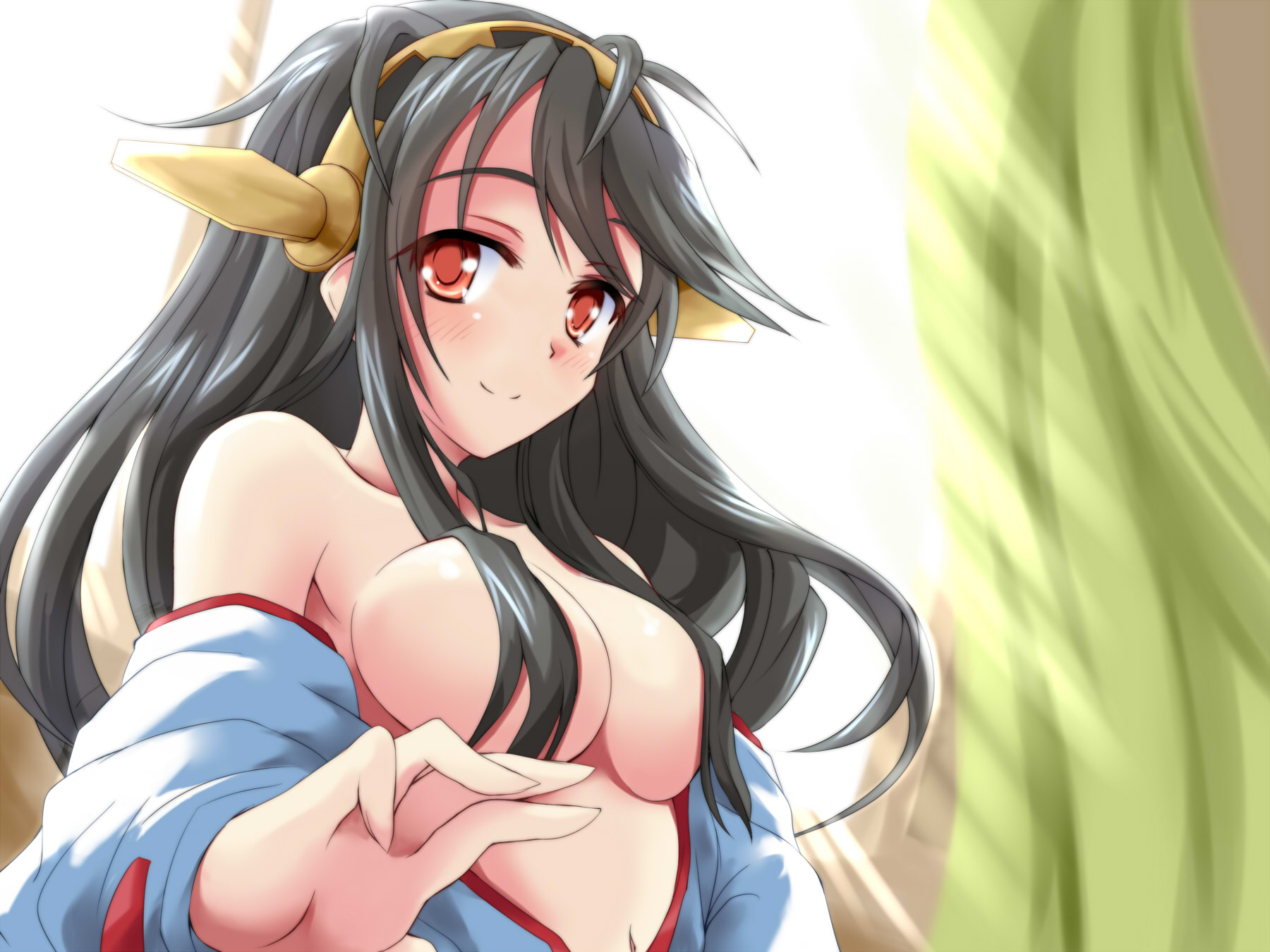 amano yuu, vita (nanoha), lyrical nanoha, mahou shoujo lyrical nanoha, mahou shoujo lyrical nanoha a's, 00s, 1girl, :<, ahoge, blue eyes, braid, downblouse, female focus, flat chest, hat, nipples, oekaki, red hair, solo, twin braids