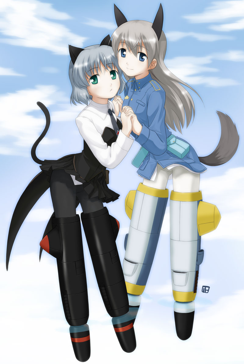 00s2girlsanimal earsblack pantyhoseblue eyesblue hairblushclouddayflyingfull bodygreen eyesgrey hairholding handslong hairmultiple girlspantiespanties under pantyhosepantyhoseshort hairskysmilestriker unittailunderwearwhite pantyhose