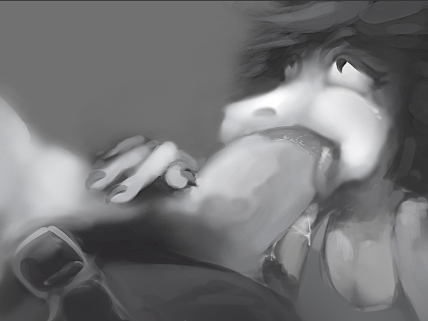 polyester (psg), panty & stocking with garterbelt, commentary, english commentary, highres, 1boy, arm up, choker, closed mouth, clothing cutout, glove cutout, gloves, grey background, greyscale, looking to the side, male focus, monochrome, parted hair, riceba11 thief, sanpaku, short hair, simple background, sleeveless, smile, solo, upper body