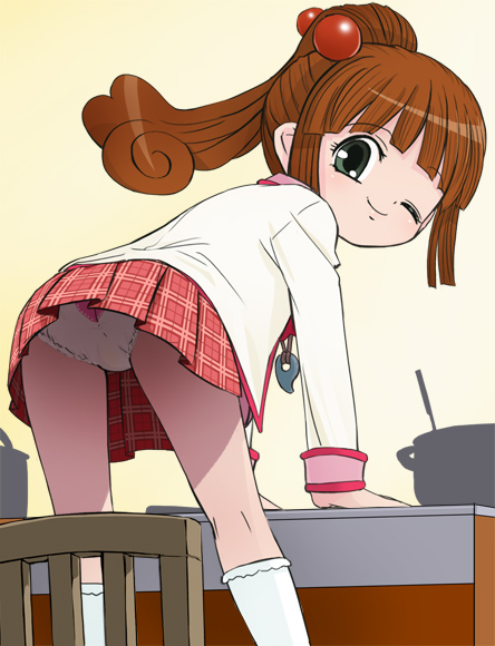 00s1girlbrown hairfemale focusgreen eyeskitchenlolimagatamaone eye closedpantiespantyshotponytailprint pantiessolounderwearwink