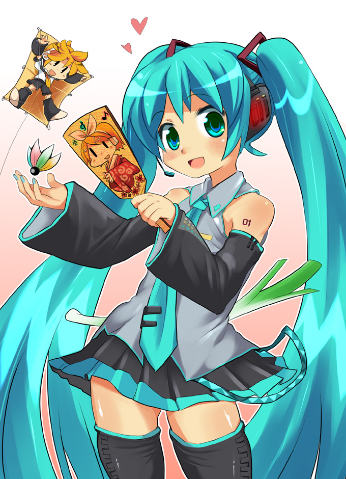 terumii, hatsune miku, kagamine len, kagamine rin, kaito (vocaloid), meiko (vocaloid), liberty leading the people, vocaloid, bad id, bad pixiv id, 2boys, 3girls, brother and sister, chibi, fine art parody, multiple boys, multiple girls, parody, siblings, spring onion, thighhighs, twins, twintails