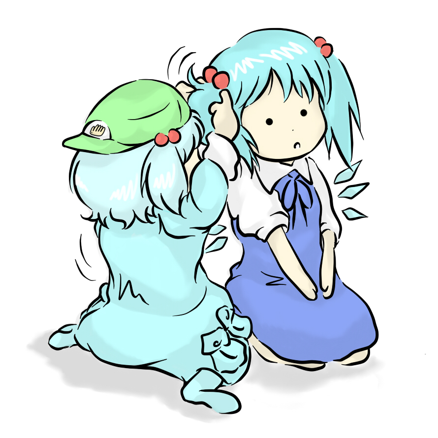 2girlsalternate hairstylebackwards hatfemale focushair bobbleshair ornamenthatmultiple girlssimple backgroundtwintailstwo side up