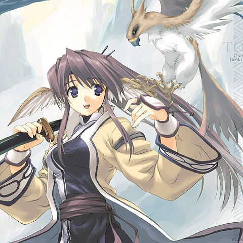00s1girlanimal earsbirdblue eyesfalconfemale focushead wingslong hairponytailpurple eyespurple hairsoloswordweaponwings