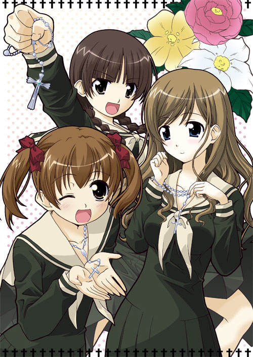 kanikama, kamio haruko, kamio misuzu, air (visual novel), 00s, blonde hair, blue eyes, feathers, hug, long hair, red hair, short hair