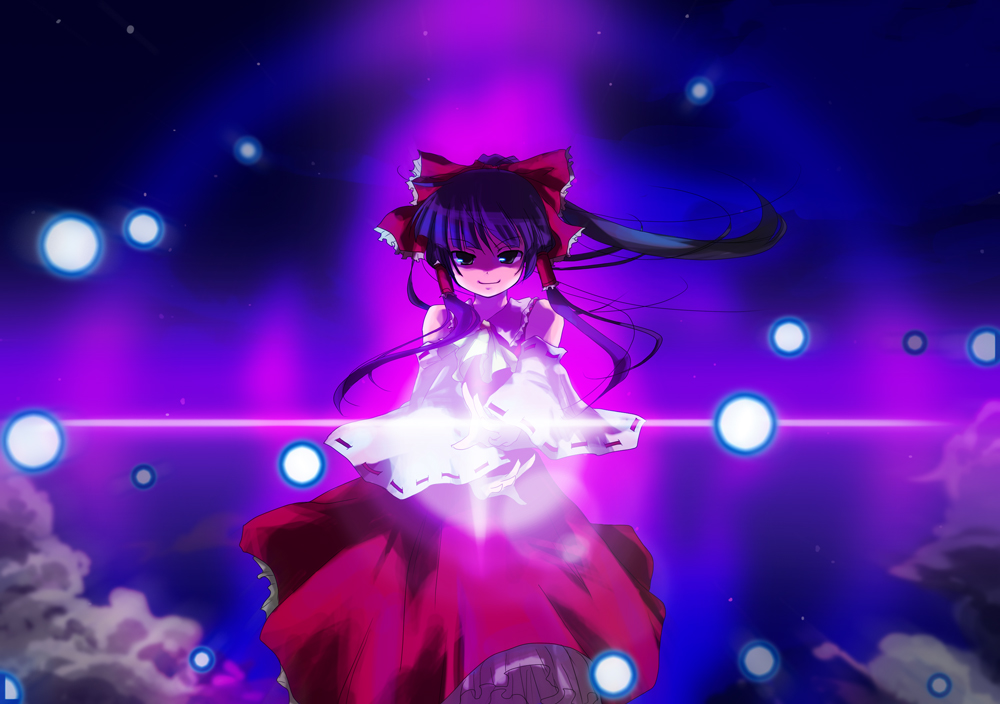 shinki (touhou), mystic square, touhou, touhou (pc-98), 1girl, arms at sides, capelet, cowboy shot, dress, female focus, frills, fur trim, grey eyes, grey hair, hair bobbles, hair ornament, long sleeves, looking at viewer, red dress, simple background, solo, white background, wide sleeves